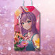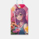 Pretty anime themed birthday to and from gift tags. Cute graphics of a beautiful anime girl with purple hair surrounded by balloons and pink and purple flowers. These are cute for a teen or pre-teen girl.