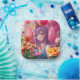 Pretty anime themed birthday paper plates. Cute graphics of a beautiful anime girl with purple hair surrounded by balloons and pink and purple flowers. These are cute for a teen or pre-teen girl.