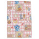This charming pattern features the beloved characters Tom, Jerry, and Tuffy engaging in sweet bakery adventures. Set against a pink gingham background interspersed with delightful culinary motifs, the design showcases Tom and the mice in various playful scenarios involving cakes, doughnuts, and other pastries. Each vignette is framed in ornate, cookie-like borders, adding a whimsical touch to the overall design. The pattern bursts with pastel colours and adorable illustrations, perfect for decorating kitchen accessories, children's clothing, or any baking-themed project, capturing the fun and mischief synonymous with Tom and Jerry.