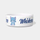 I love the pet bowls I bought for my 3 Granddogs when they come over my house. They are the perfect size to feed them when they are here for a visit. The design of their names on the bowls is great!