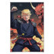 In this electrifying image, President Trump clad in a dark blue uniform with vibrant red accents, stands ready for combat. With a red belt signifying their prowess, the he strikes a powerful pose, fist clenched and gaze fixed. Behind him, a colossal red dragon with menacing horns and sharp teeth emerges from a storm of flames and smoke. A smaller dragon-like creature lurks in the background, adding to the intense atmosphere. The scene exudes a sense of imminent battle, with elements of fantasy and martial prowess blending seamlessly to create a dynamic and thrilling visual.