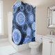 This shower curtain is printed with a unique circular pattern in shades of blue created completely from dots!