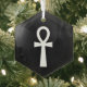 Crafted from high-quality glass, this hexagon-shaped ornament offers a sleek and modern interpretation of an age-old symbol. The smooth glass surface enhances the contrast between the crisp white ankh and the dark, dramatic background, creating a striking visual effect. The hexagon shape adds an extra layer of uniqueness, setting this piece apart from traditional round ornaments and making it an eye-catching addition to any Christmas tree. Whether illuminated by twinkling holiday lights or displayed as part of a more gothic or alternative holiday theme, this ankh ornament is sure to stand out with its refined and meaningful design.