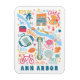 A cute hand illustrated design featuring prominent places and events in Ann Arbor Michigan. Perfect for college students, graduates, townies and transplants.