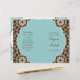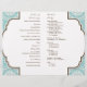 A lovely and romantic wedding program for the bride that leans to the contemporary with a tiny touch of tradition. The white damask pattern has a modern lace feel and the quatrefoil centre design is off-centre and fun! Aqua blue, chocolate brown and white is a very lovely colour combination. This invitation can be created in any colour combination you would like. All we need is a colour sample(s) and we're happy to set it up for you, just email us. PAPER RECOMMENDATION: Unless you are going to have these professionally scored and folded at a print shop, I recommend the value paper selection which is matte finish. The basic paper is high gloss outside and can crack with dark colours at the fold spot.
