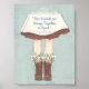 This Anne of Green Gables poster features our beloved Anne with an E wearing a brown dress under a white apron. Her boots are filled with daisies. The quote "true friends are always together in spirit" is written in blue. The background is pale blue with some distressing. Colors include brown, sage green, pale blue, yellow, and white.