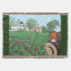 A quality printed throw has its advantages. This is a much finer weave throw than its loopier cousins, and though lighter, it is worth the investment for custom room accessorizing. The back is much prettier than the typical brown, and the fringe on the long sides very vivid, the selvage nicely done. Before photographing, I washed the throw in cold water, delicate, with a thicker woven throw the same size. On tumble dry low, this throw was dry in half the time as the other. This is a very practical quality if you use throws for furniture covers or to wrap up in frequently. The sleekness of the fabric makes it a great layer for accenting or protecting without the feeling of sitting on too much stuff. Perfect for napping or when you feel a light chill coming on. The color printing is beautiful and on this fabric, matched the design and color of my Photoshop image. This is an advantage for blending room fabrics and colors. The fringe on the short sides prints the colors from the design image and therefore varies from the side fringe. I streaked a white fractal line through the plaid pattern to give the illusion of weaving. This printed as crisp as an illusory thread, and put some white in the short side fringe, showing another advantage of print vs loomed- for artistic purposes, line lines, detail, and color integrity can be planned and preserved. My loomed throws have color limitations and more of a needlepoint texture. Print throws reproduce an exact image. The throw felt a little stiff straight out of the package, but this went away in the first delicate wash. Of course I searched the wash water for ink or bleeding and there was none.
