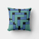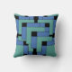 Annexe square and lumbar throw pillows. Annexe is an abstract design created by Vexenwraith and consists of turquoise and blue blocks on a black background.