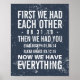 Our unique frameable print is easy to customize with your anniversary and your children's names and birthdates! Modern vintage typography design features the words "First we had each other, then we had you, now we have everything" with spaces for your wedding anniversary and two children's birthdays, on a navy blue background. Have three or four kids? Check our shop for an alternate version.