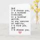 It was a lovely card, and I bought it for my 17th wedding anniversary. Unfortunately, it was never used, because my husband died the night before, so it is still sitting in my drawer. It also took too long to get to us, so didn't arrive till well after our anniversary was over. The printing was fine, and looked very nice.