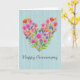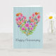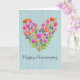 This is a lovely anniversary card for a couple that is celebrating their love. It is flowers arranged into a heart on a background of light blue stripes.