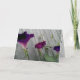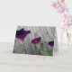 The image on the (anniversary) greeting card consists of the pink-purple variety of Morning Glory wildflowers along a grey, wooden fence on a sunny summer's morn.