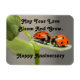 Cute photo of a ladybug couple sitting together on a plant leaf, is featured on this magnet. With message, "May Your Love Bloom And Grow. Happy Anniversary". A sweet gift to give that special couple for their anniversary!