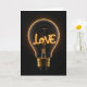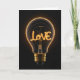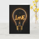 A light bulb with the word "LOVE" illuminated within it glows against a dark background.