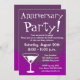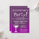 Anniversary party invitations | Custom invites for guests. Personalizable announcement text and background colour. Cocktail glass design with purple colours. 50th wedding anniversary.