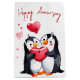 Cute watercolor penguins with red hearts on a white background for couple or spouse anniversary
