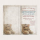 Announcement of retirement with old worn and weathered lace-up boots in vintage style. Gender-related text, the year, the honorary text, the date, the time, the place of celebration and RSVP can be customised.