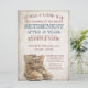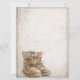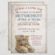 Announcement of retirement with old worn and weathered lace-up boots in vintage style. Gender-related text, the year, the honorary text, the date, the time, the place of celebration and RSVP can be customised.