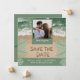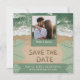 Sage green and teal modern beach vibes with photo, save the date sand letters, and personalised photo. NOTE: Text, font, colours and elements are fully customisable by using the design tool.