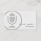 In this announcer entertainer business card, a big bold translucent black icon of a microphone sits on the left side of the card. The background is a soothing off-white paper texture, with your name and title appearing in simple easy to read black letters on the lower right. Your other contact details appear on the back of the card. Perfect for entertainment, performing arts, artistic skills, show business, professional themes.
