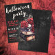 Dark Moody Spooky Gothic Skull Roses Books Halloween Party Invitation Red White Black.
