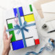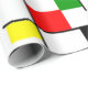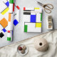 This wrapping paper has a Bauhaus design in primary colours that looks like stained-glass. Colourful, bold, fun! Great companion for other Bauhaus designs.