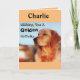 Another birthday? Yes, it's true! Celebrate a birthday with cheer up wishes in a golden retriever card. The birthday photo shows a champion golden retriever with a closeup endearing expression. Golden owners will smile at the funny verse inside about "birthdays are golden."