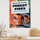 Squirrels are depicted in a forest setting with a prominent message about preventing forest fires. Bold text emphasizes the importance of fire prevention, stating that nine out of ten fires can be avoided.