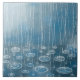 Painting of rain and puddles splashing on a blue background. A typical English summer day.