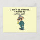Mildred is a grey haired elderly lady with some pretty strong opinions! On this funny exercise theme design she states "I don't do exercise...it makes my coffee spill."! Humourous exercise theme T-shirts, mugs,bags, cards, stickers, magnets, keychains, ornaments, and more, sure to make yourself and others chuckle!