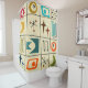 This shower curtain has a mix of mid-century modern elements in retro colours, place on a grid. If you like the design but prefer different colours, message me.