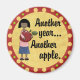 This magnet would make a nice teacher thank you gift. It features red and yellow colours, a female teacher and the words "Another year... Another apple".