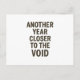 Aging never felt so… inevitable. This “Another Year Closer to the Void” birthday postcard delivers the perfect mix of sarcasm, existential dread, and deadpan humour. Designed for those who roll their eyes at Hallmark and embrace the chaos of getting older, this darkly funny postcard is ideal for friends, coworkers, or anyone spiralling (but still showing up). Whether mailed solo or paired with a black balloon and emotional damage, it's a brutally honest way to say: "Congrats on surviving another year." Printed on sturdy cardstock and the most awkwardly heartfelt message of a cosmic void.