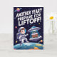 Blast off into another year with this fun and quirky space-themed birthday card! Featuring a cartoon astronaut floating in space, gazing at a birthday cake caught in a UFO’s tractor beam, this design is perfect for space lovers and sci-fi fans. The glowing futuristic text, twinkling stars, and colourful nebulae add a cosmic touch, making this card an out-of-this-world way to celebrate a birthday!