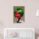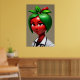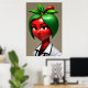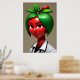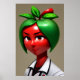 A Portrait of a cute red apple lady with green hair wearing white clothes. This is a AI generated art.