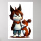 A Portrait of a cool cartoon Anthropomorphic dog and his pet, the dog is wearing a white jersey, brown jacket and blue pants. This is a AI generated art.