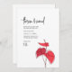 A playful pop of red complements an elegant anthurium flower casual line drawing in this Anthurium Modern Floral Wedding Invitation. Crisp lines and delicate script fonts complete the look for any luxe yet casual tropical event. Perfect as a printed card, but eye-catching and effortless as a digital download too. Easily PERSONALIZE to make it fit your needs.