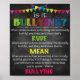 A great poster to hang in a classroom or school guidance counsellor office to educate and remind kids what constitutes as bullying and how to identify when it is happening.