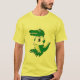An alligator wearing a human on his shirt.