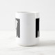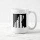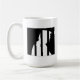 Anti trump art coffee mug for rational, pro democracy friends who will not vote for the felon. Black and white silhouette of Trump behind bars in jail. Anti Trump art to stop Trump in 2024!