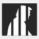 Anti trump sticker for friends to not vote for the felon. Black and white silhouette of Trump behind bars in jail. Anti Trump art to stop Trump in 2024!