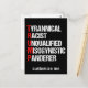 Anti Trump Funny Acronym customisable postcards which features a word poem describing his character: tyrannical, racist, unqualified, misogynistic panderer. Resist this president and continue to support the resistance efforts for equal rights and basic human decency in America. Fight for freedom in our country for all races and genders. Add your own text in white.