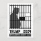 Anti Trump postcard for political humour junkies who want justice by seeing felon Trump in prison. Mug shots are the first step! Funny graphic of a portly slouching behind bars Trump in Federal prison. Make America decent again in 2024. No felons for president!