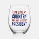 I can love my country and not like my president. Being a true American patriot means liking America and wanting the best for its people whether you are anti Donald Trump or Joe Biden. A patriotic wine glass gift for a democrat.