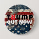 This button says "Trump Out Now." It expresses disapproval of Trump and his handling of Washington. It allows people to show their opinion of the former president.