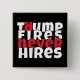 Show your true colours with this button expressing your feelings about President Donald Trump! Featuring the catchy anti-Trump protest slogan "Trump Fires, Never Hires," this button is a fun way to wear your heart on your sleeve (or jacket, bag, wherever!). It's a great conversation starter, letting everyone know where you stand. Perfect for rallies, protests, or just adding a bit of personality to your everyday look. Express yourself and make a statement with this awesome button!