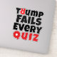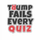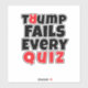"Trump Fails Every Quiz" sticker. pods product for students anti trump protest. black and red bold typography.