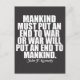Mankind must put an end to war or war will put an end to mankind. John F. Kennedy quote. Great anti-war quote postcards for a pacifist against the Israel attacks on Gaza.