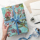 Antique Birds and Flowers Pattern on teal Wrapping Paper