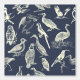 Bird lovers and bird watchers will love this pattern with a classic style. This peel and stick wallpaper features an assortment of engraving style illustrations of birds in an ivory or cream colour all set against a navy blue background.